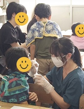 院長、内川先生、岩瀬先生、2名の衛生士と共に、1年生と6年生の歯垢染色液を付けて、磨き残しがないかチェックをしました🤗